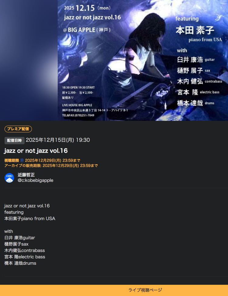 | 12/15月 | 『 jazz or not jazz vol.16 』
