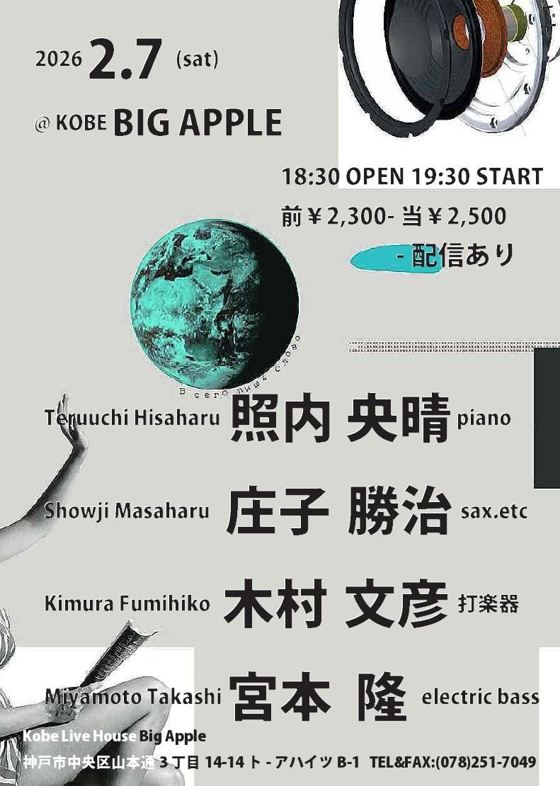 | 2/13金 | 『 昨夜 / ヨンベ 』 定岡 弘将(ds) 古山 晶子(ts) 市川 聡(guitar) 森定 道広(bass) |