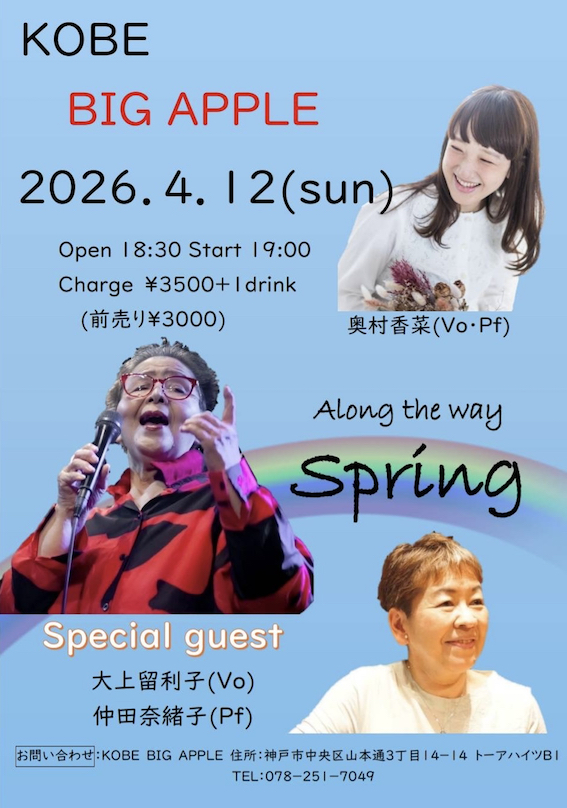 | 4/12日 | 18:30オープン 19:00スタート 1,奥村香菜(vo,p)
