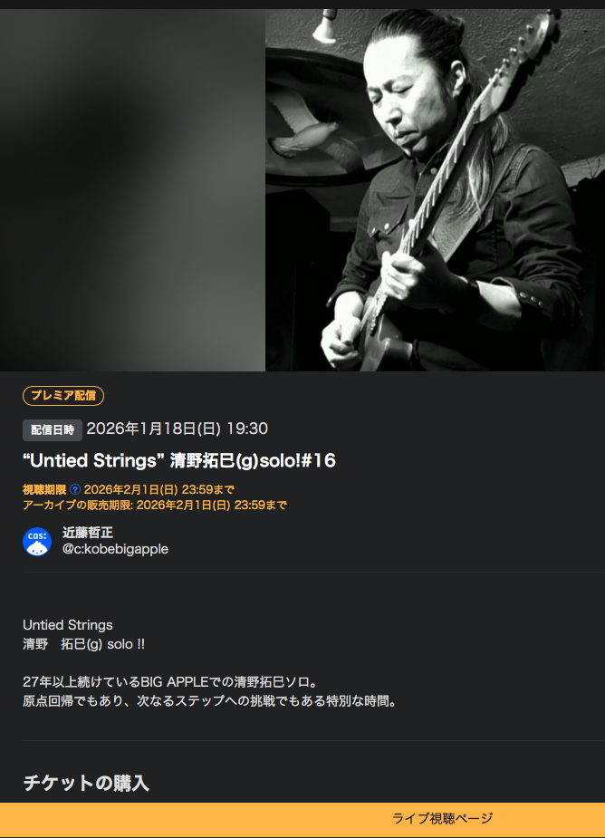 | 1/18日 | 『 Untied Strings 』 ツイキャスにて有料ですがlive配信もします! |
