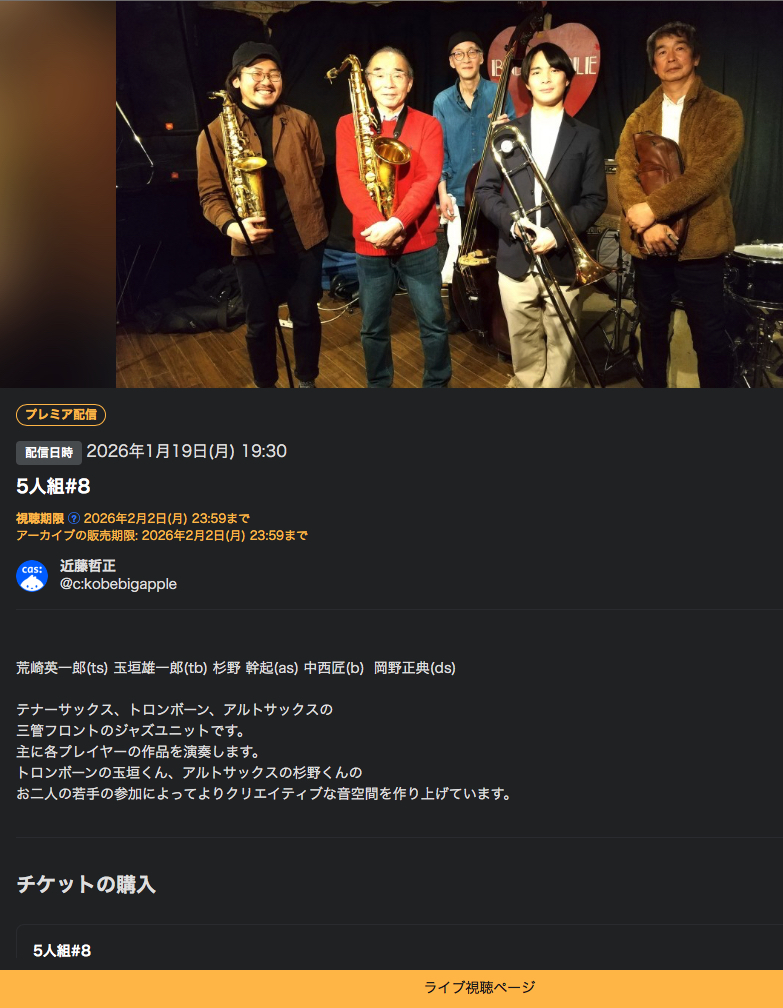 | 1/19月 | 『 5人組 』 ツイキャスにて有料ですがlive配信もします! |