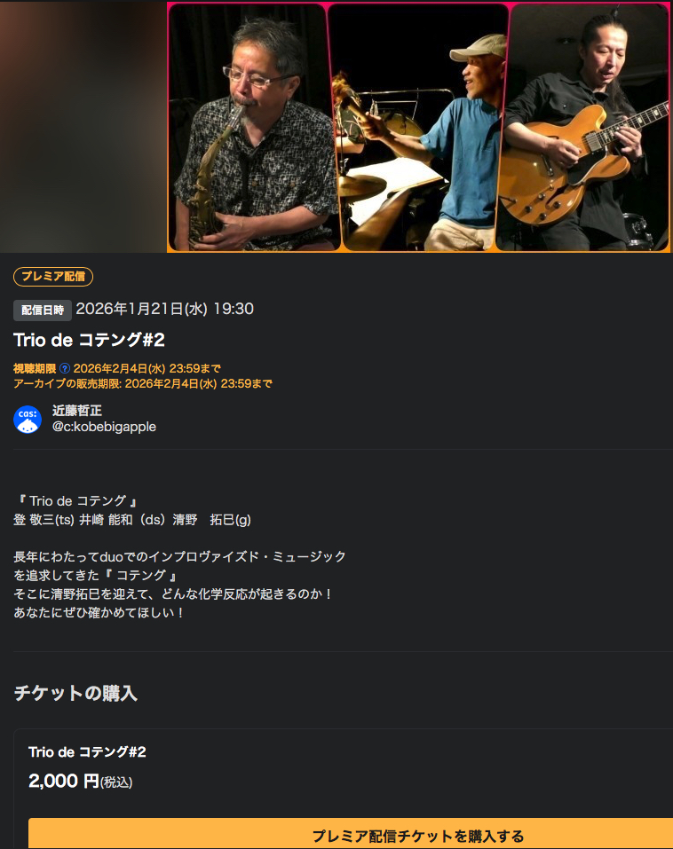 | 1/21水 | 『 TDK / トリオでコテング 』 ツイキャスにて有料ですがlive配信もします! |