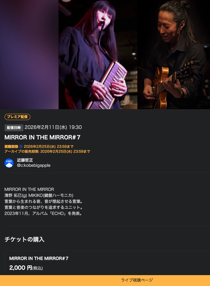 | 2/11水 | 『 MIRROR IN THE MIRROR 』 ツイキャスにて有料ですがlive配信もします! |