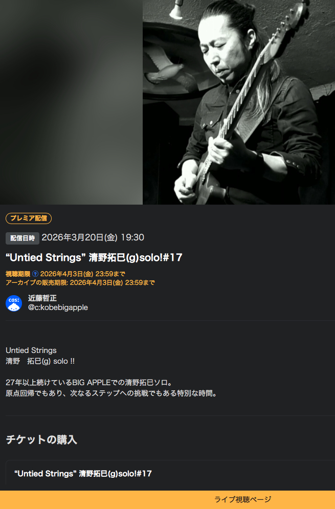 | 3/20金 | 『 Untied Strings 』 ツイキャスにて有料ですがlive配信もします! |