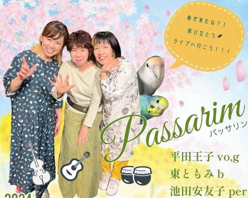 | 6/17水 | 『 パッサリン 』 平田 王子(vo,g) 東ともみ(b)池田安友子(perc) | 前¥3,000- 当¥3,300- |